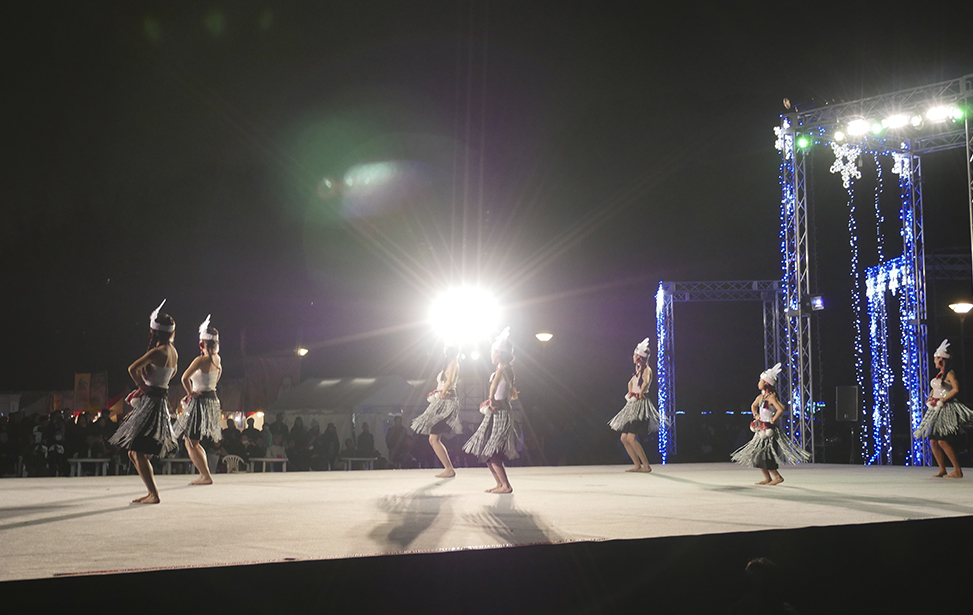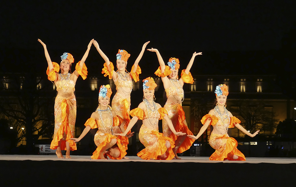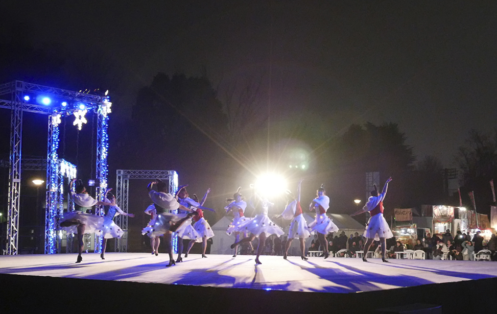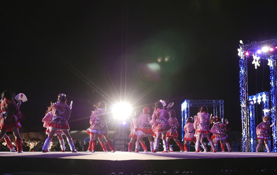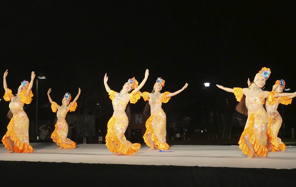 ブラックライトメイクで演出されたダンシングチームによるステージあり