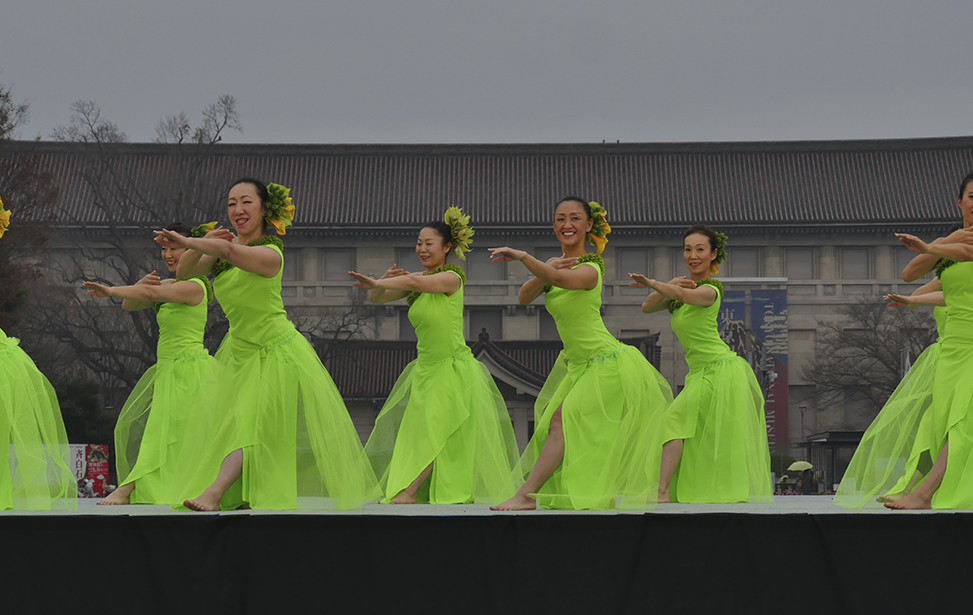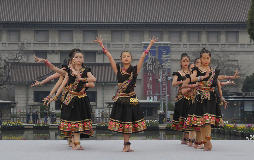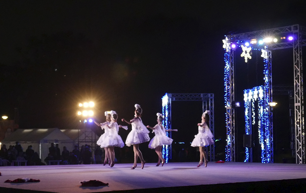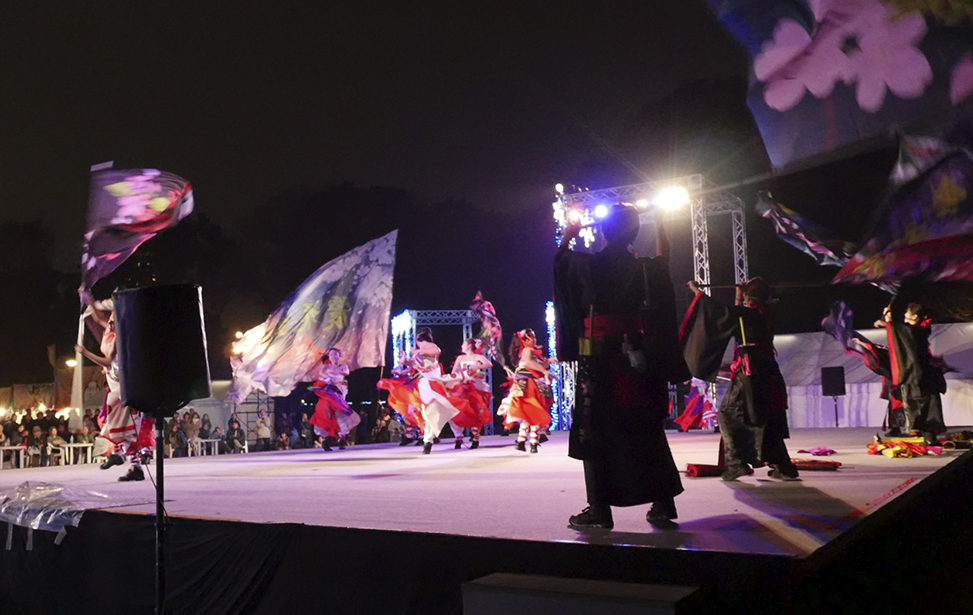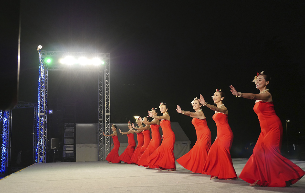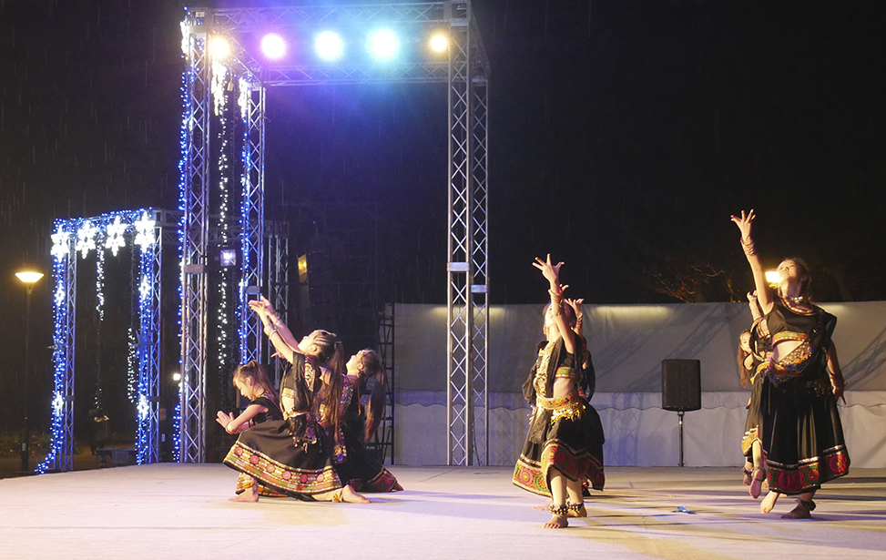 ブラックライトメイクで演出されたダンシングチームによるステージあり