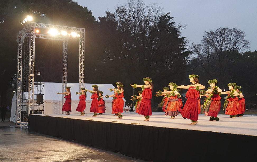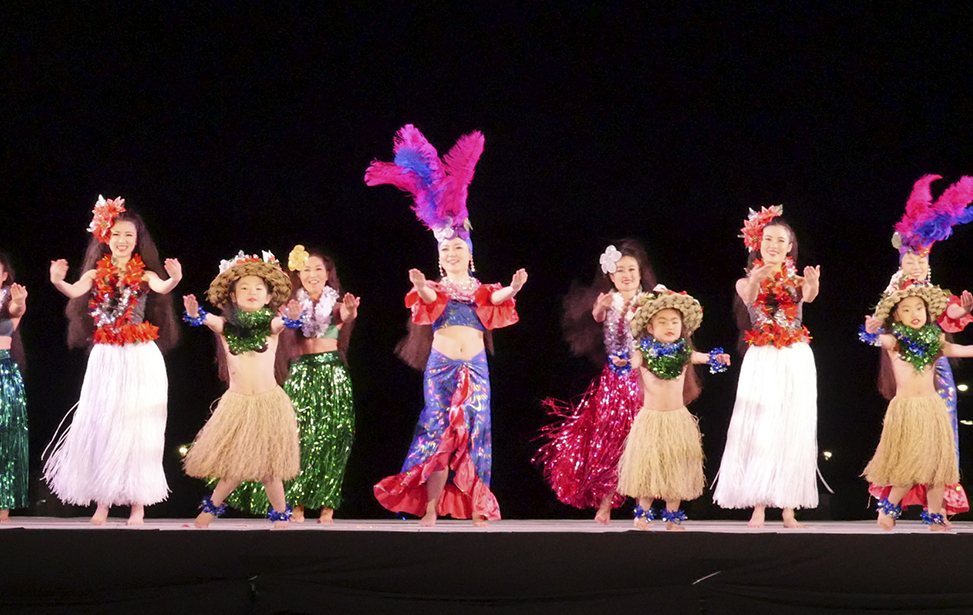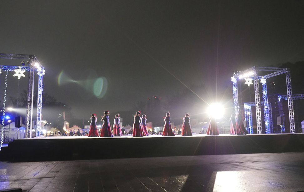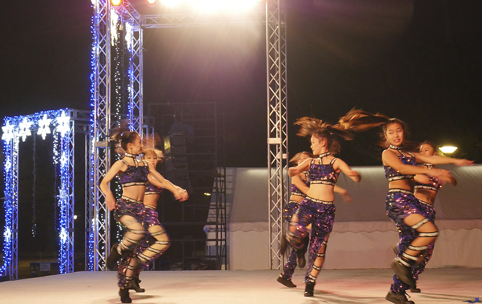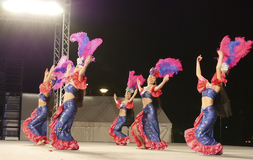 ブラックライトメイクで演出されたダンシングチームによるステージあり